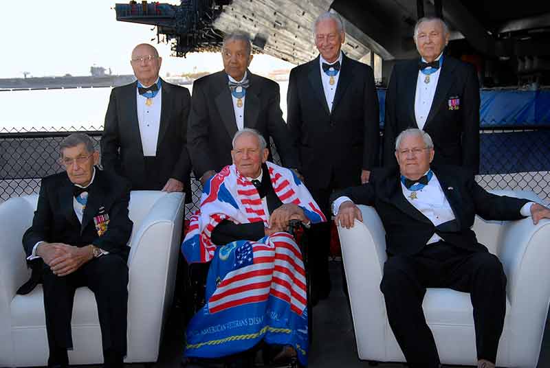 John Finn in 2008 (seated, center) with six other Medal of Honor recipients of WWII