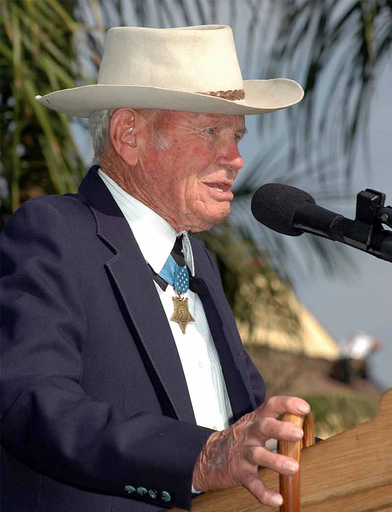 John Finn—in 2005 at the age of 96—speaking at a dedication ceremony